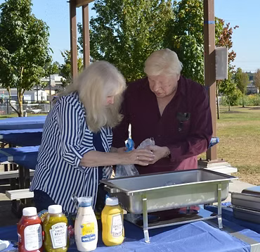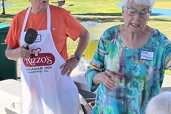 The Friday Night gathering was an informal "Granny Grotto's In The Park" with gourmet not-so-greasy burgers and the trimmings. The weather was "Eagle Perfect", and the burgers were incredible flavor, simply taking us back 60 years to Grotto's In and Out Burgers. Pam and Jim Wonn took the lead, organized, and pulled off a genuine feast for our $5 suggested donation.